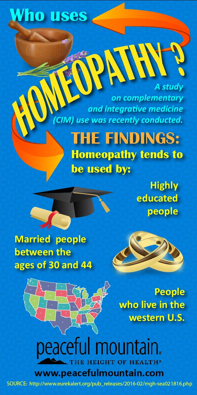 The study also found that users of homeopathy tend to be Caucasian women, they are usually between the ages of 30 and 44, they are most often married, and most reside in the western United States. Homeopathic users also tend to be more highly educated.